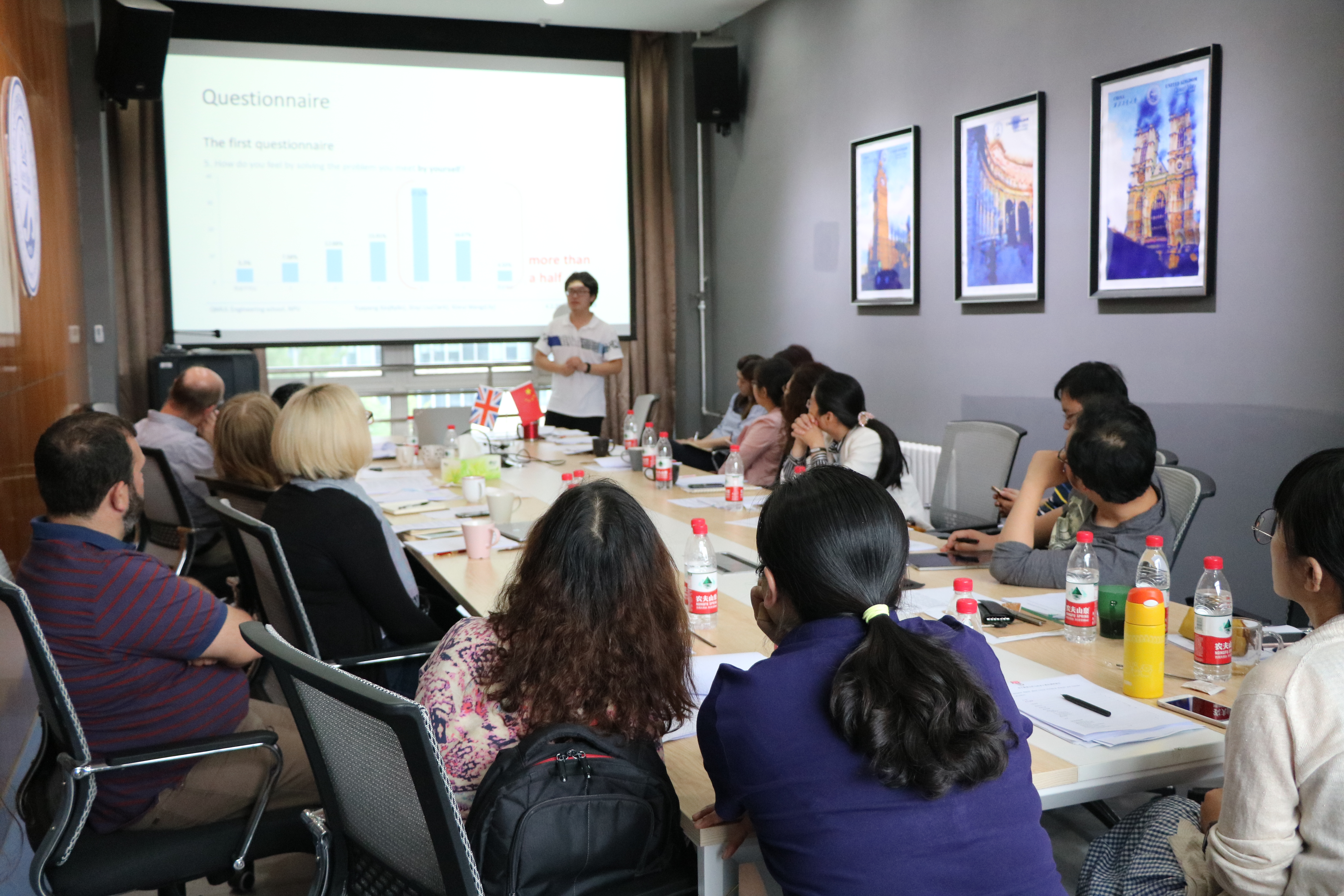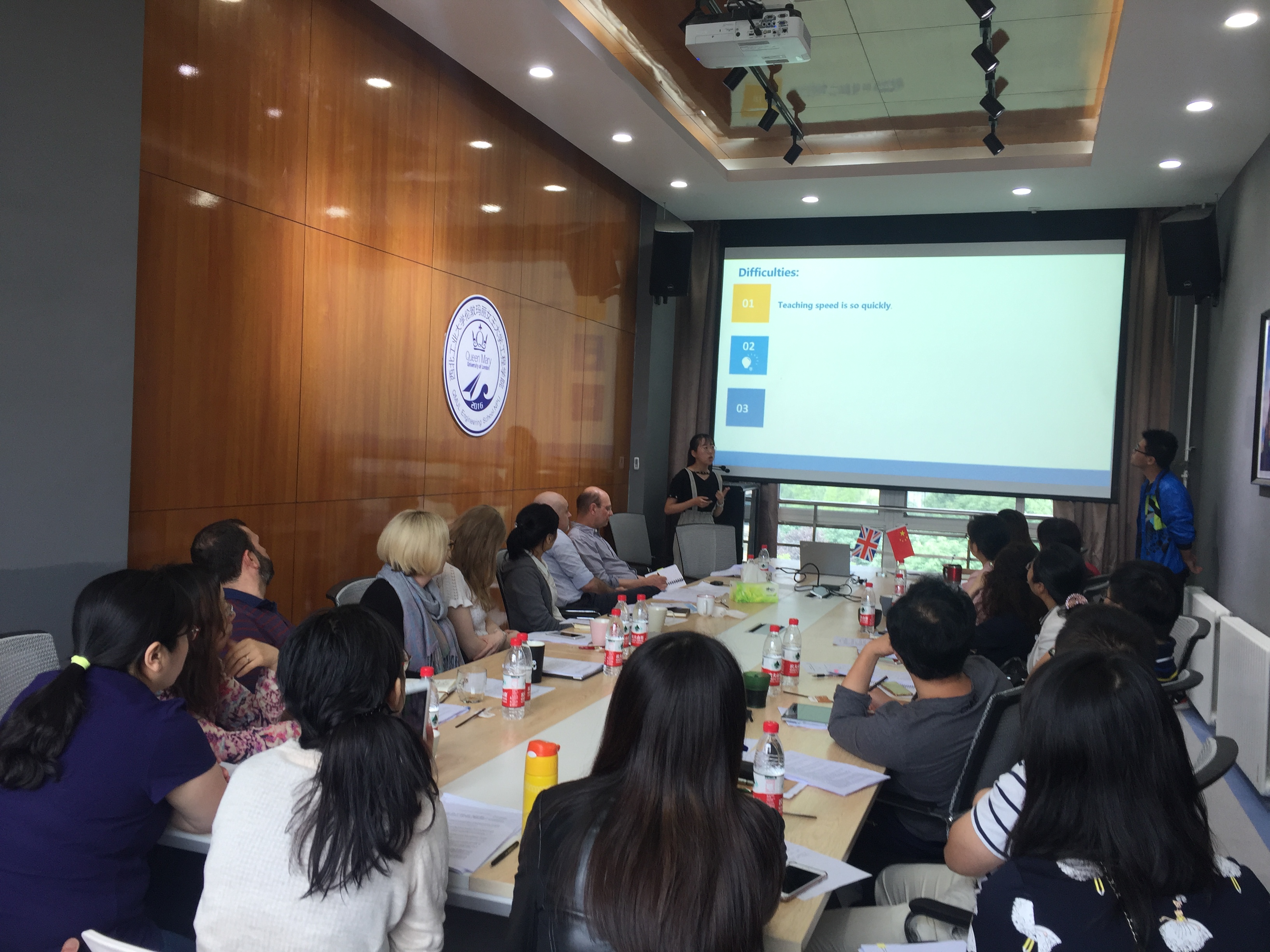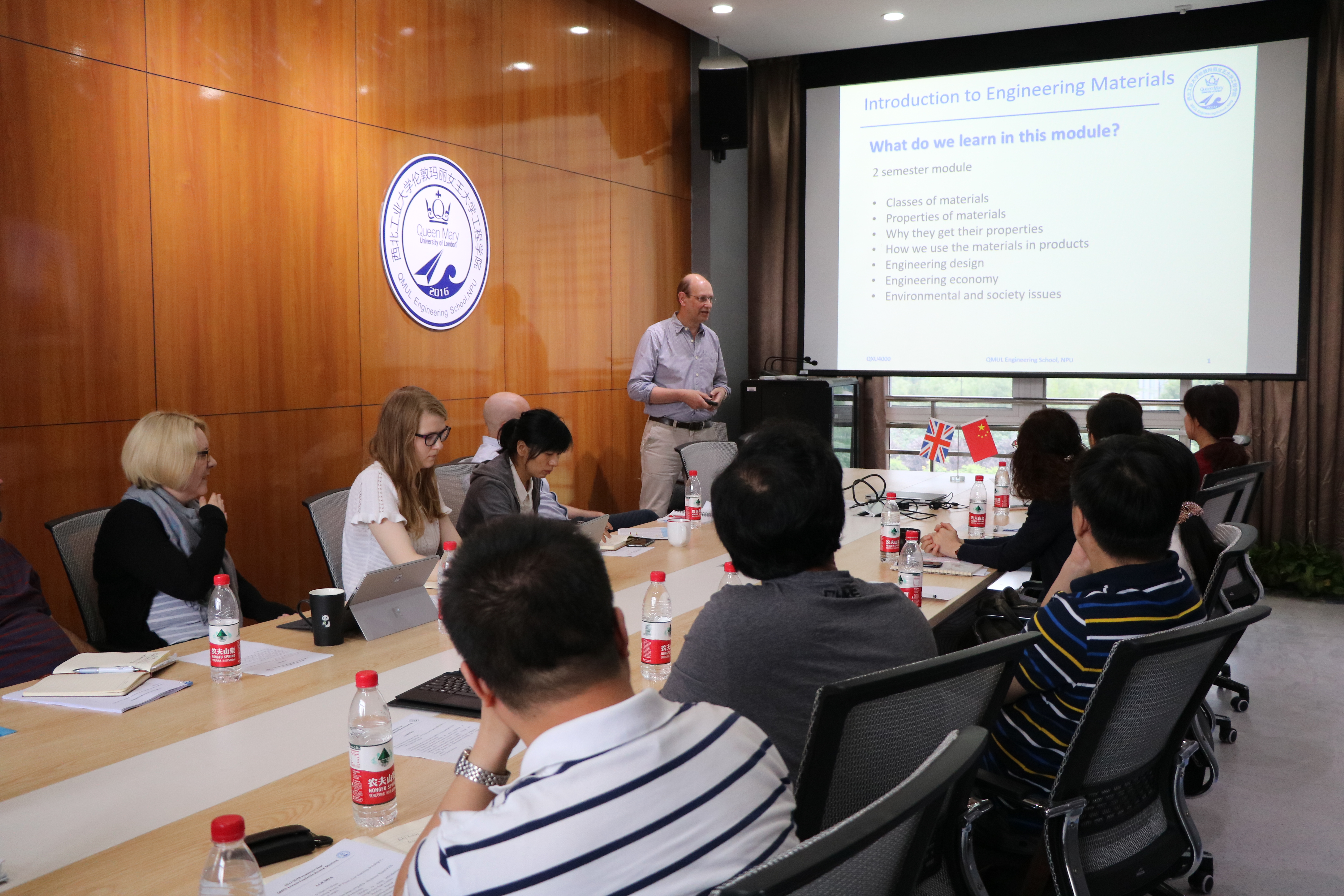 会议的第一部分由Matt Potter博士和Andy.Bushby教授作为课程代表,分别报告了英语和PDP课程,以及工程材料概论课程的教学情况,包括教学内容和所采取的教学模式、员工学习情况分析以及作业和成绩等。玛丽女王yl7703永利2017级员工在英语课程上的表现超出了授课教师的预期。Matt表示,欢迎专业类课程和语言类课程的老师们一起讨论实际教学中的一些问题,以提高公司的教学效果。Andy.Bushby教授重点说明了工程材料概论课程的综合实践模块,展示了员工在综合实验和实践环节中的表现。此模块旨在培养员工对于所学知识的综合运用,增强同学们的团队协作能力,逐步培养员工的自主学习和探索意识。