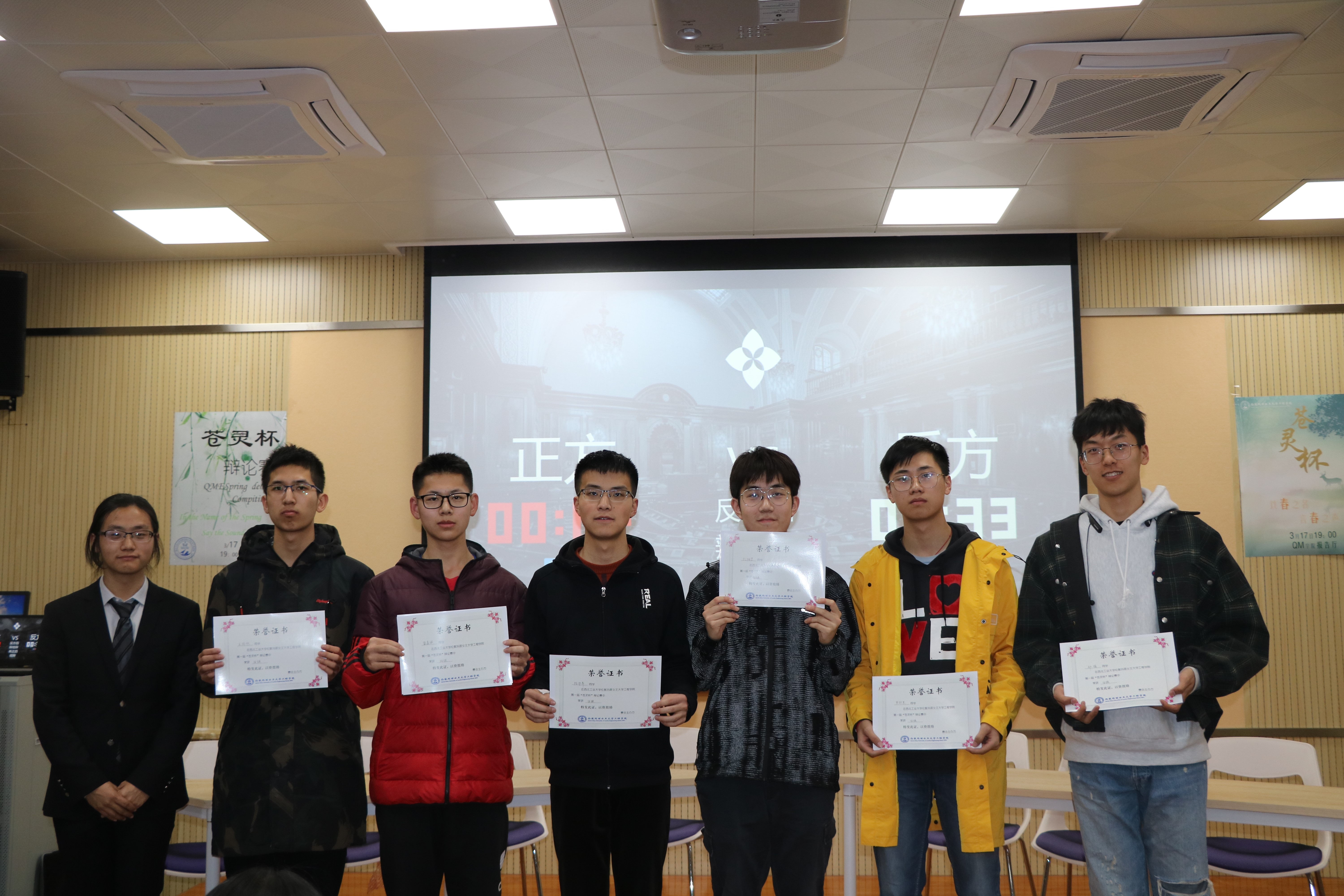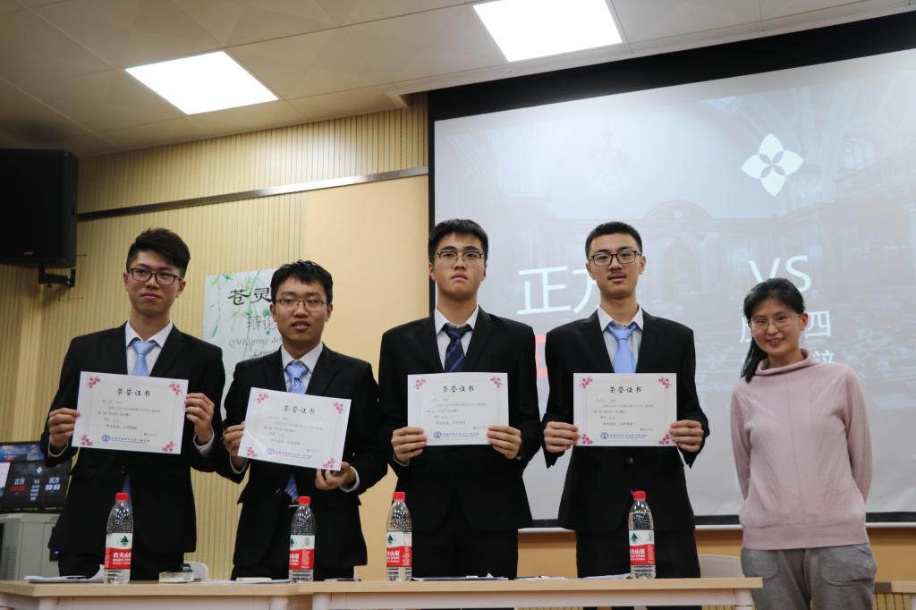 本次“苍灵杯”辩论赛四强的另外两队,“我想和蔡徐坤一个篮球队”与“这位辩手你说的不队,以及在初赛和复赛阶段的最佳辩手张修琪、邢扬、郑植、丁德一和李逸辰,一同走上领奖台,收获成长的喜悦。