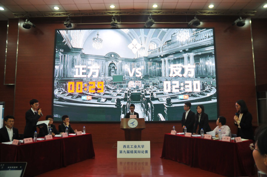 2019年西北工业大学第九届精英杯辩论赛分为初赛、复赛、半决赛和决赛,在赛制上延续以往的开篇立论、质询、自由对辩、奇袭、总结陈词等环节。但不同于往届的“积分晋级”制度,本届比赛采取了两两对决的“淘汰赛”形式。