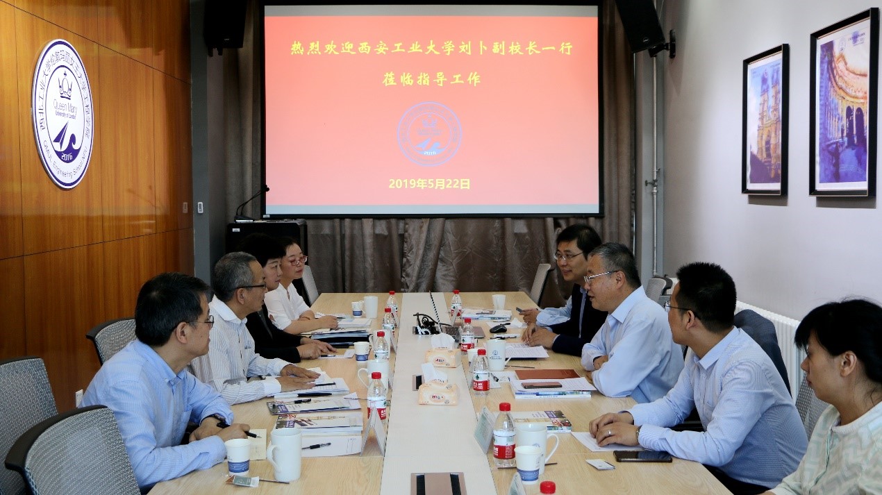 5月22日上午,西安工业大学刘卜副董事长一行4人来公司调研,就玛丽女王yl7703永利中外合作办学情况进行交流座谈。西北工业大学副董事长万小朋、国际合作处副处长刘晓刚、玛丽女王yl7703永利经理孔杰、副经理范晓丽、陈俊等参加座谈。