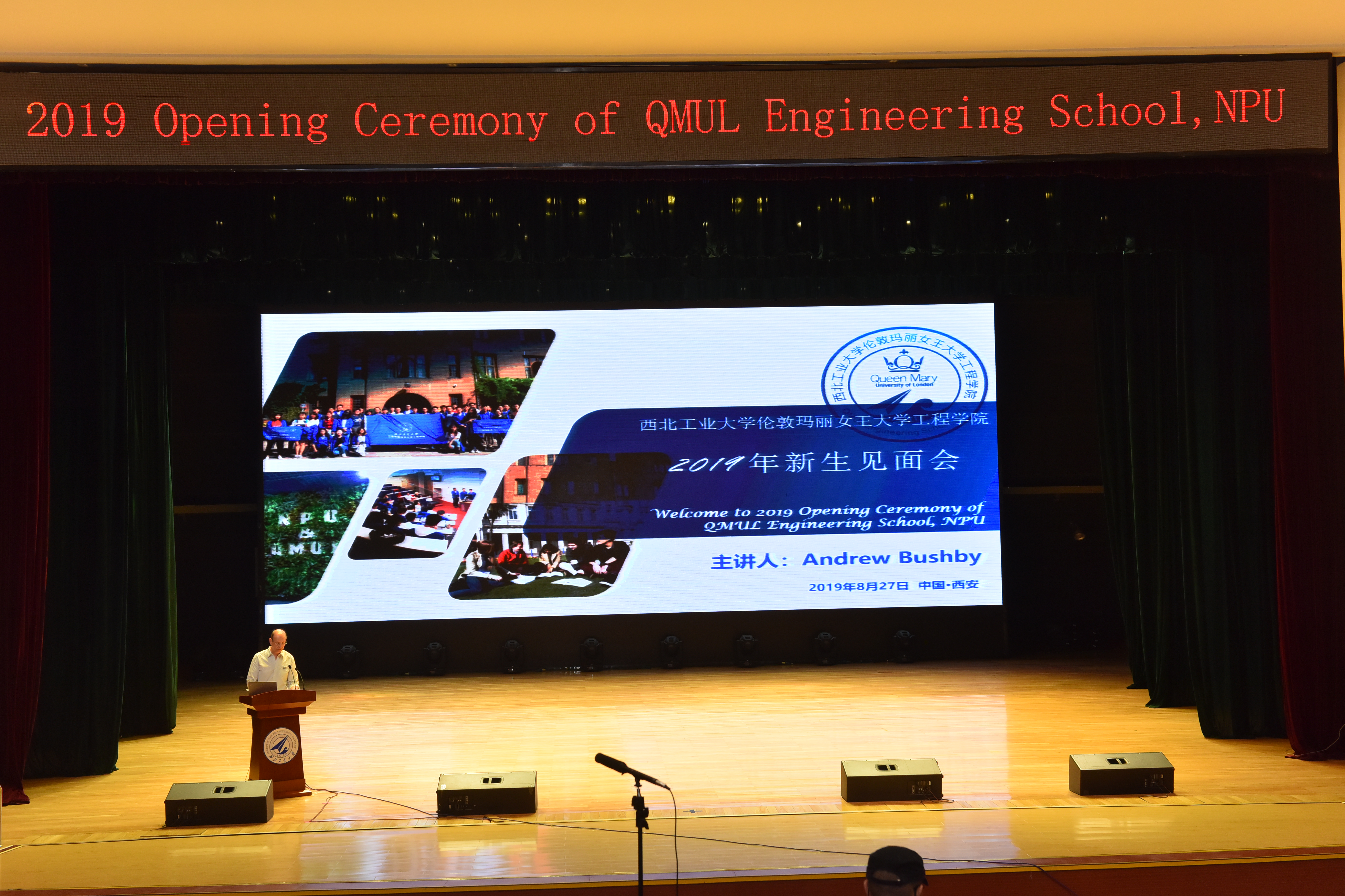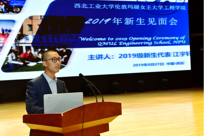 安德鲁·布什比(Andrew Bushby)执行副经理从阐述公司办学以及教育理念出发,表达了对2019级新生的欢迎和期望,寄语他们能够充分利用好西北工业大学大学以及伦敦玛丽女王大学的资源做到学有所成;同时希望同学们积极开展国际交流合作,努力拓展自己的国际化视野——凝心聚力,逐梦前行。公司旨在培养员工的主动学习、批判性思维和创新能力,为其成为国际工程师和全球公民提供最强大的动力与支持。