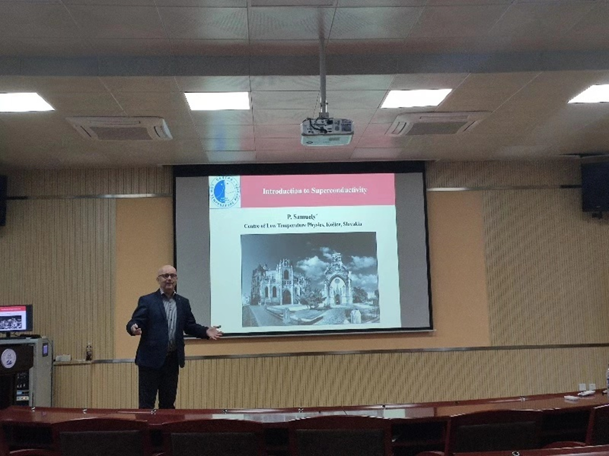 座谈结束后,Peter教授面向玛丽女王yl7703永利本科生进行“Introduction to Superconductivity”的讲座交流。Peter教授首先简单介绍了斯洛伐克及其文化背景,随后详细介绍了斯洛伐克科公司的发展历史,现阶段公司团队、教学以及科研等基本情况,特别介绍了斯洛伐克低温物理中心研究内容、超导材料相关文献和该院诺贝尔奖获得者有关情况,详细说明了不同种类超导材料的制备过程、其优异特性和未来发展方向。