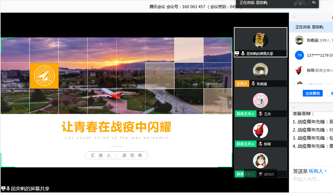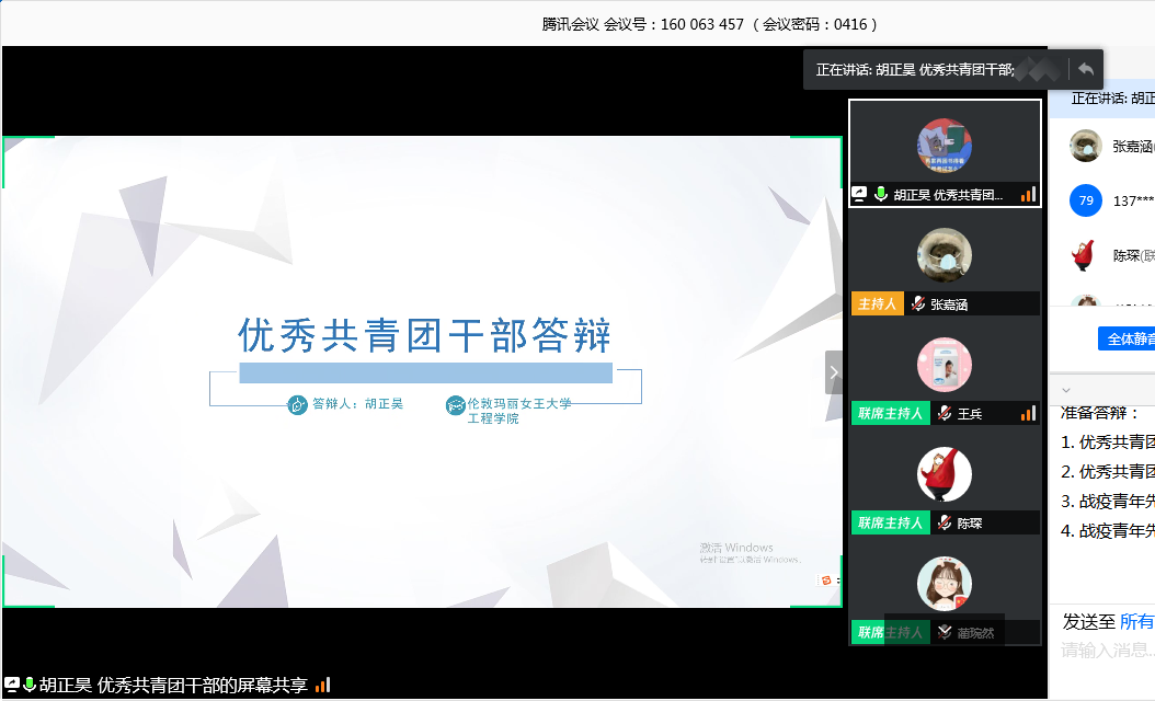 此次线上会议答辩的集体与个人向各位评委老师展现了他们在2019-2020学年的丰硕成果。各个团支部开展了丰富多样的团日活动,支部成员团结一致,和谐向上。同时,各位优秀的支部成员在2020年疫情期间积极响应号召,发挥自己的特长,为抗击疫情贡献己。回顾过去的一年,各个团支部的充实活动、扎实的学风和积极向上的学习氛围给各位评委留下的深刻的影响。
