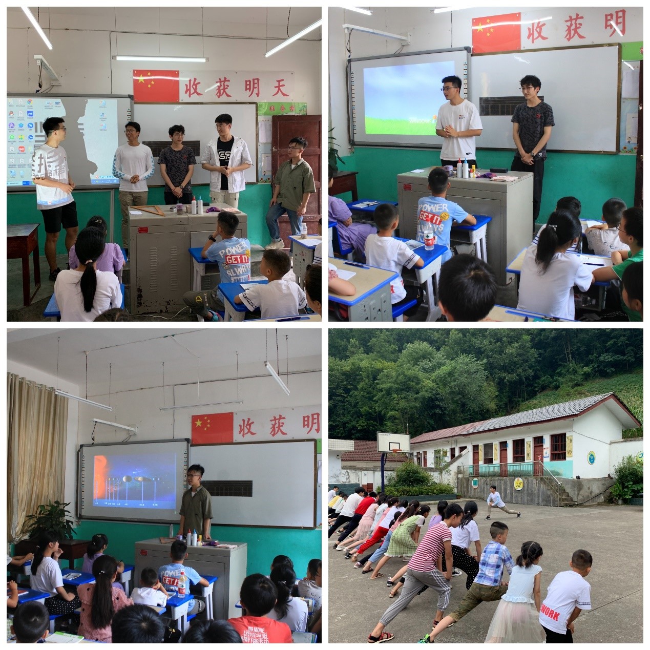 其实,每个山里的孩子都有一个大梦想。为了帮助他们拓展眼界、了解世界,支教队成员们精心组织了“立大志向,圆大梦想”的专题授课,给当地员工带来大山之外的多彩青春。国际员工联合会副主席、玛丽女王yl7703永利2018级本科生孟令挥通过连线,向大家讲述中国一流大学的故事。谈到西工大的校情校史,结合在当地扶贫工作的开展,大家由衷感到亲切自豪。玛丽女王yl7703永利2017级本科生刘烨锟以“享受生活,探索世界”为主题将自己的国际化实践经历娓娓道来,通过对“世界奇迹”的介绍,鼓励员工对未来充满好奇,勇敢探索。“走遍世界不算神奇,这次咱们上天入海、遨游太空。”玛丽女王yl7703永利魏晨昱、陈光磊带领大家一起体会“空天地海”的奥秘,有趣的科普知识与尖端的科技前沿引人入胜,让员工们感到无限魅力,同时也树立了他们追逐梦想的决心。
