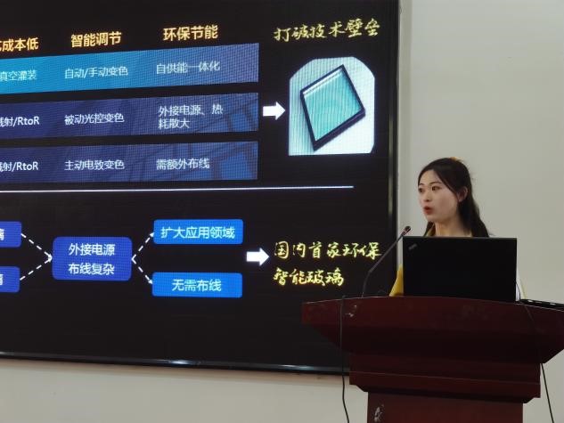 E-light科创团队基于“碳达峰碳中和”的国家政策要求和建筑物绿色转型的市场发展需要,整合设计电致变色玻璃和透明光伏电池,开发了一款自供能一体化智能窗。该产品具备自主能量采集、高性能变色、满足物联网需求等核心优势,有效化解了当前电致变色玻璃窗难以推广的问题,为建筑物绿色转型提供了新方案。目前团队已获得多方支持,团队与中国建筑材料集团有限公司进行联合研发,开展技术攻坚,并与红星美凯龙、隆昇光电等多家企业联合进行市场开发和技术升级。