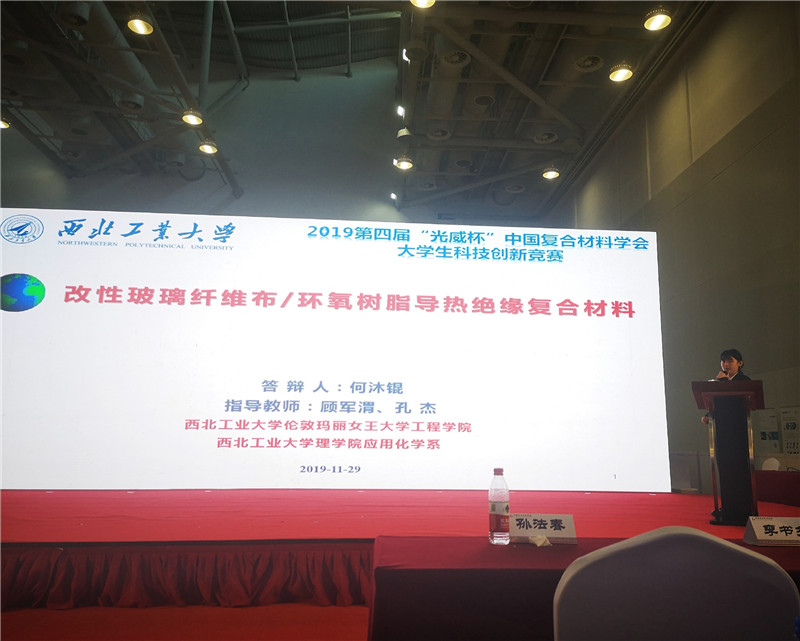 西工大新闻网11月30日电(阮坤鹏 顾军渭)11月29日,第四届“光威杯”中国复合材料学会老员工科技创新竞赛全国决赛在广东珠海落下帷幕。来自公司伦敦玛丽女王大学yl7703永利何沐锟、刘芯雨、李昀格、肖卓睿与理公司应用化学系阴祥凯5名本科生组成的竞赛团队,在理公司应用化学系顾军渭教授和孔杰教授共同指导下,完成的“玻璃纤维布/环氧树脂导热绝缘复合材料”项目最终斩获自主命题组唯一的全国一等奖。