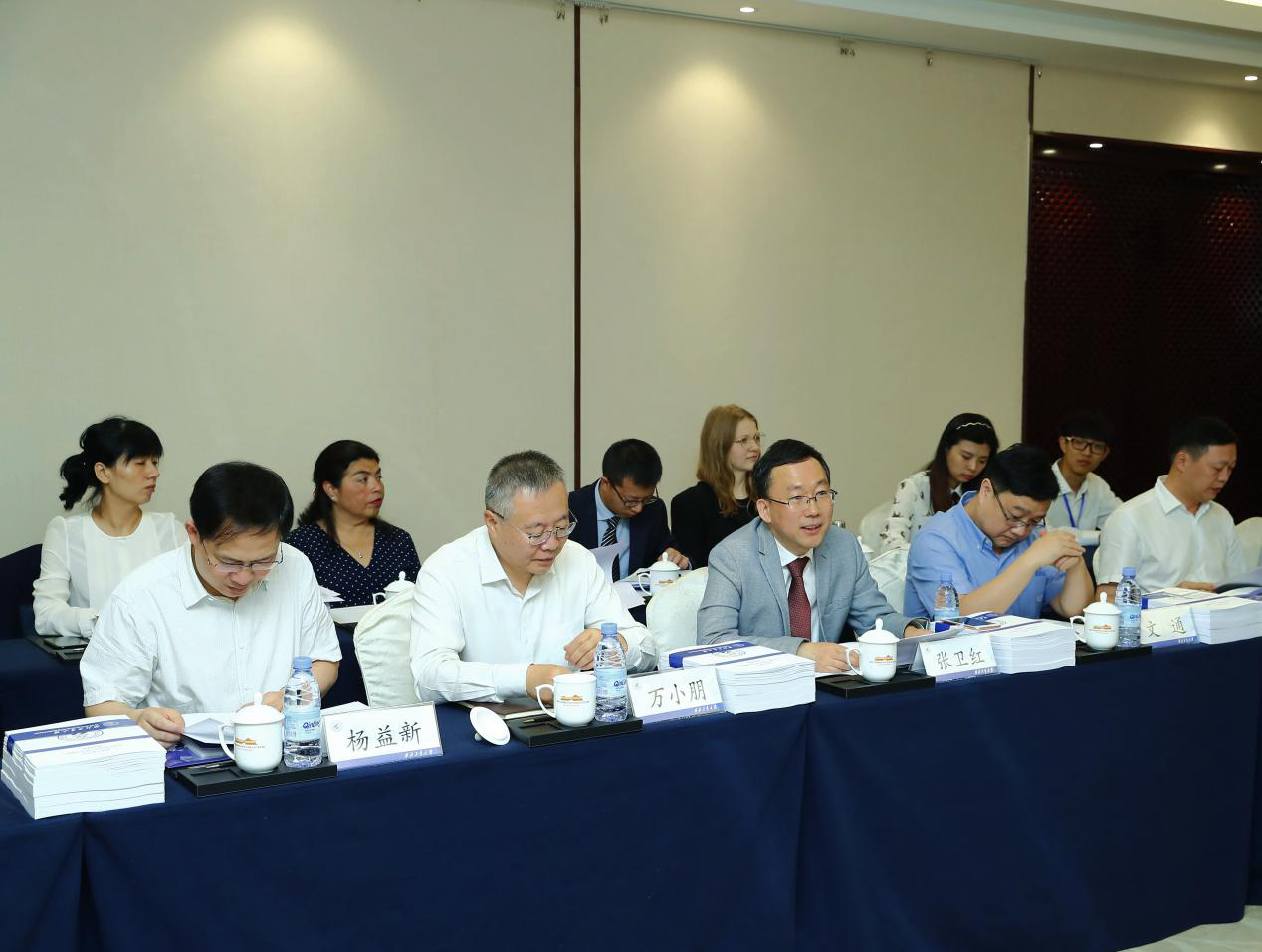 唐振福主持现场评估会议,对现场评估规则、指标体系和整体流程进行了简要阐释。韩静代表教育部国际合作与交流司,结合前期中外合作办学现场评估实践,阐述了评估工作的意义、内容和方式。文通代表陕西省教育厅,对陕西省中外合作办学进行了整体介绍,并希望通过此次评估,进一步提升和推动陕西中外合作办学整体质量和水平。