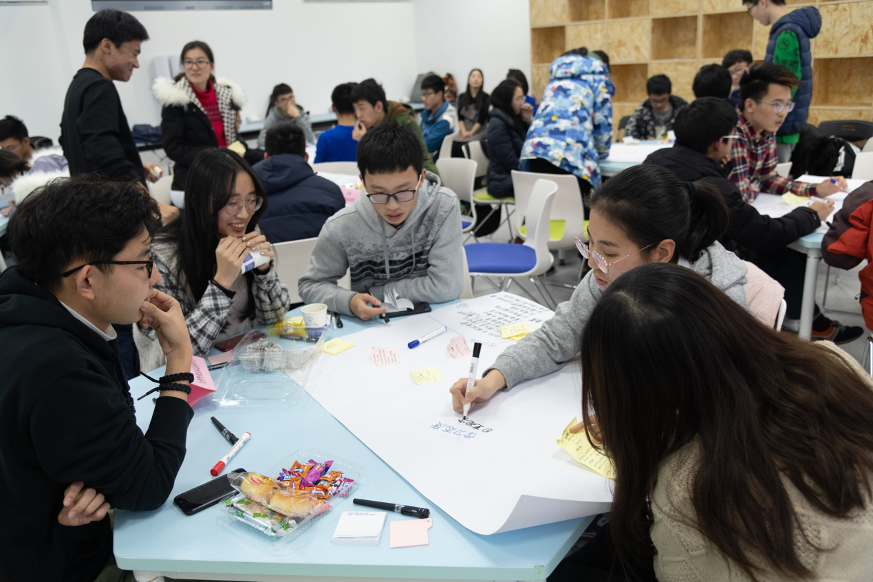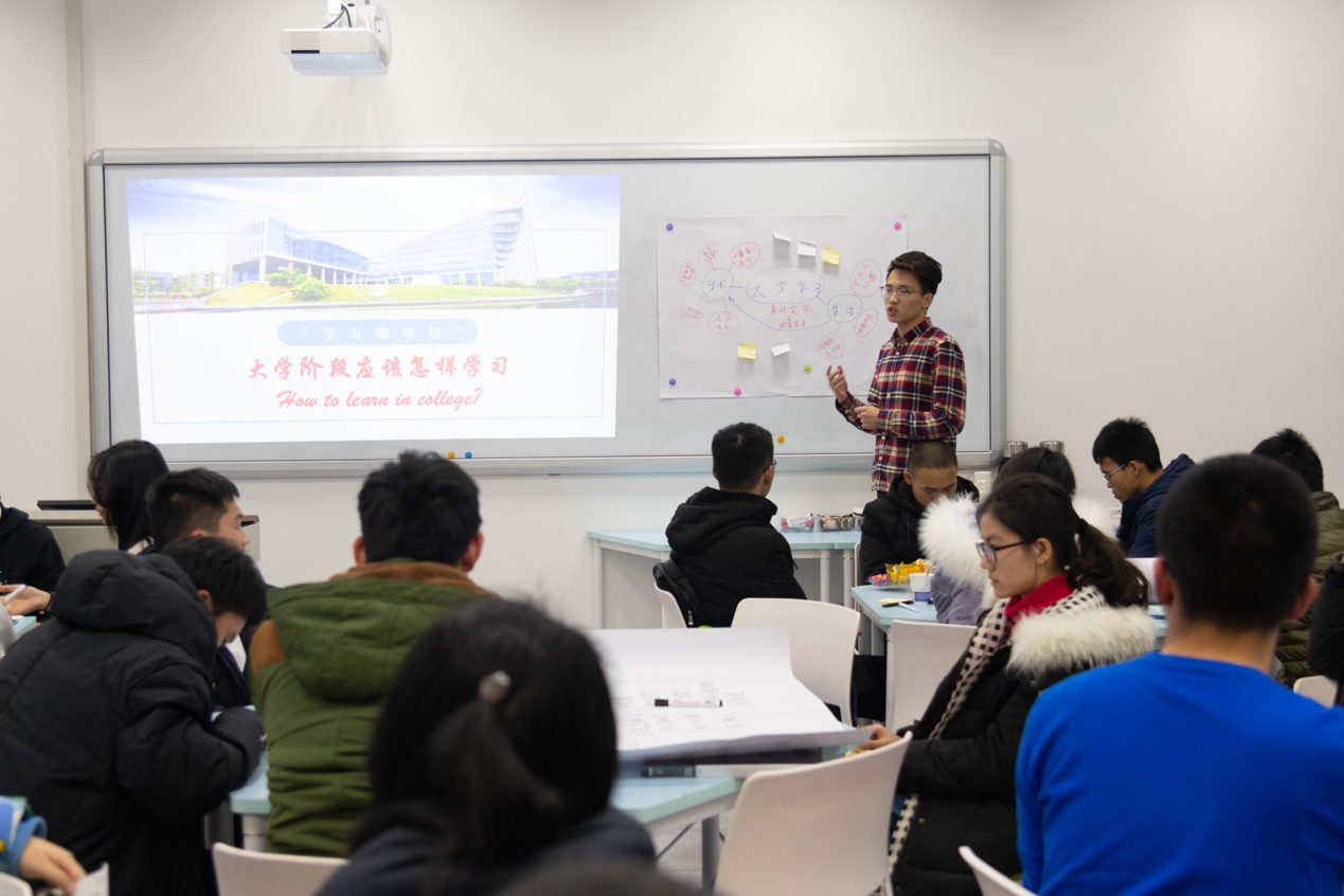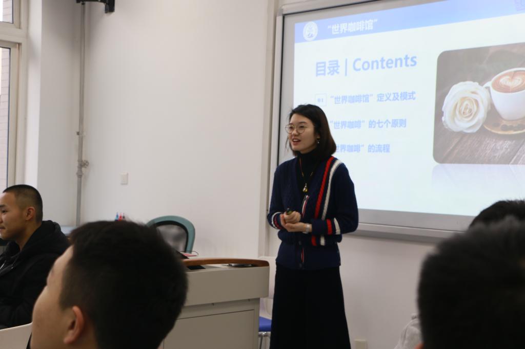 研讨会由女王公司教学办公室副主任杨烨主持。她首先介绍了本次研讨会的主题——大学阶段该怎样学习(Howtolearnincollege)。接下来,他为到场的同学们讲解了本次活动的讨论模式“世界咖啡”。“世界咖啡”通过“用对话解决问题、找到方案”的学习方式,营造朋友聚会式的休闲氛围,是团队协同共进的高效工具,让深藏的思想碰撞出火花。“世界咖啡”同一主题展开,共有三个集体讨论环节,每一个讨论环节结束后与会者都要更换座位,与新的成员开展下一环节讨论,最后,所有小组分享讨论成果。