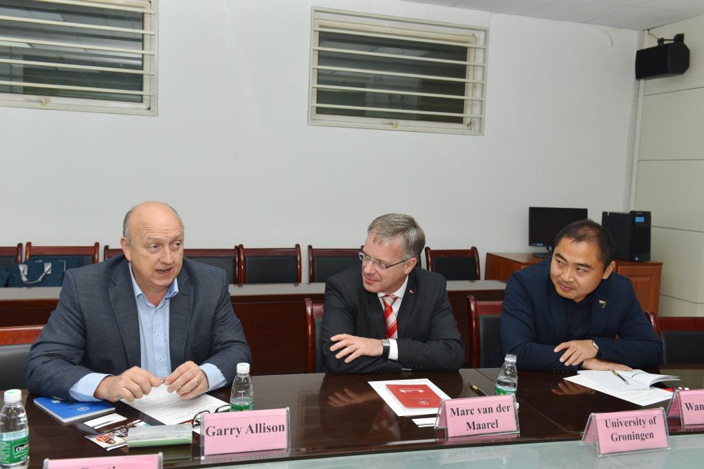 荷兰格罗宁根大学Marc van der Maarel教授对受邀参加西北工业大学系列活动表示感谢,并详细介绍了格罗宁根大公司史校情、院系设置以及学科特色,特别是中国职工在格罗宁根的学习和生活情况,希望能有更多的西工大学子赴格罗宁根交流和学习。