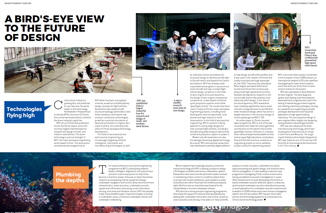 《自然》(Nature)杂志用8页的篇幅重点介绍了西北工业大学航空宇航科学与技术、船舶与海洋工程、材料科学与工程、机械工程及其力学基础、信息科学等优势学科及柔性电子、语音识别、脑科学、特殊环境生物学和生物医学工程等新兴学科方向。同时,还向全世界的科技工作者宣介了西北工业大学的人才政策。