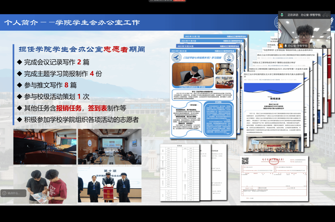 会议进入第二项议程,各部门依次进行述职答辩。按照办公室、新媒体宣传中心、权益服务中心、学习实践中心、文体活动中心的顺序,各部门在述职报告中,全面回顾和总结了上一阶段的工作。各部门负责人表示,将继续凝聚共识,团结协作,以更加饱满的热情和更高的标准为同学们提供服务。