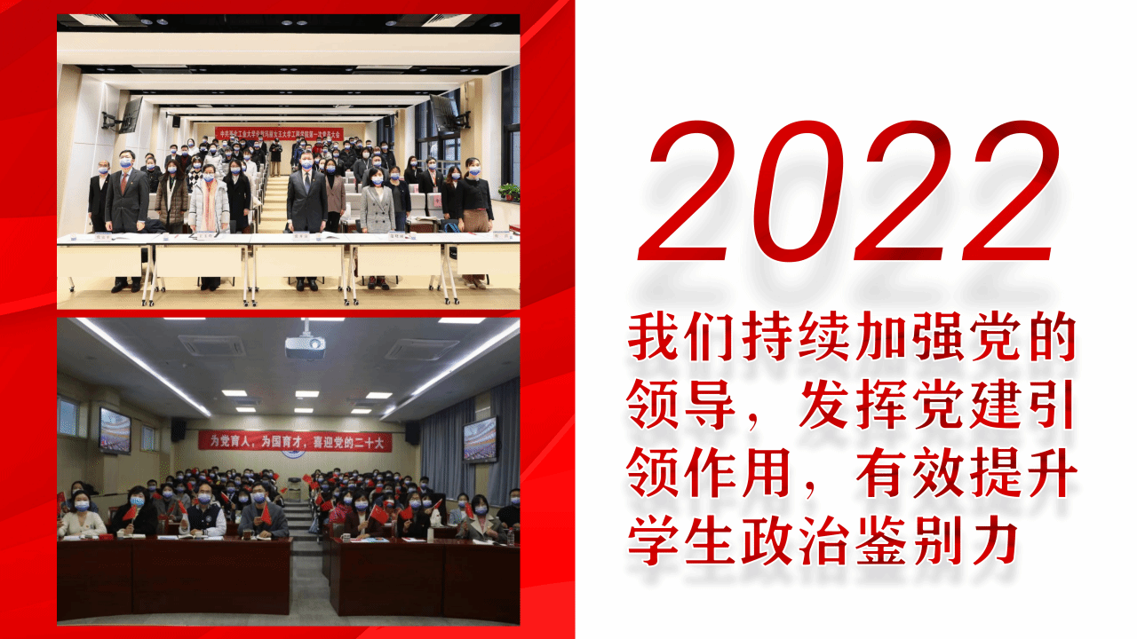 回望2022,我们持续加强党的领导,发挥党建引领作用,认真学习宣传贯彻党的二十大精神,构建全方位思政育人新格局,有效提升员工政治鉴别力。
