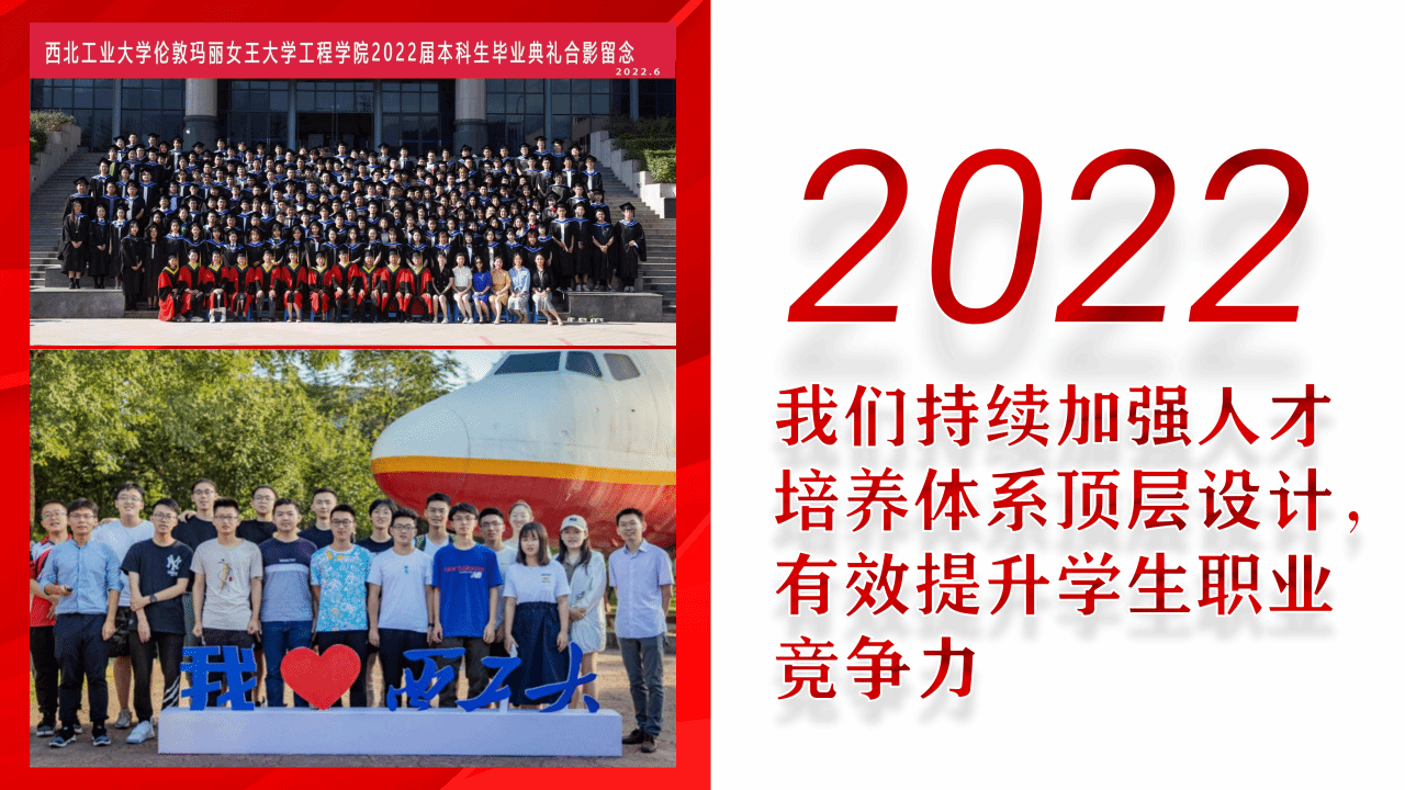 我们遵循数理基础和语言能力-专业知识和专业技能-专业实践能力的递进式专业养成路径,思辨思维和团队精神-工程师思维和协作能力-工程师创造力的能力提升路径。这一年,公司员工在第八届国际“互联网+”大赛上实现金奖零的突破,荣获金奖1项、银奖1项、铜奖4项;美国老员工数学建模竞赛特等奖提名奖1项,一等奖3项,二等奖12项;立项国家老员工创新创业训练项目116项,全校位列第1;荣获陕西省“互联网+”金奖3项、省“挑战杯”竞赛金奖1项;集团第二十届“三航杯”竞赛特等奖2项、一等奖4项;参与国家级、省级和校级各类创新创业项目累计515支团队、2102人次,获奖621人次,荣获2022年度全校模范团队1个(全校10个)、模范班级1个(全校10个)、五四红旗团委(全校8个)。
