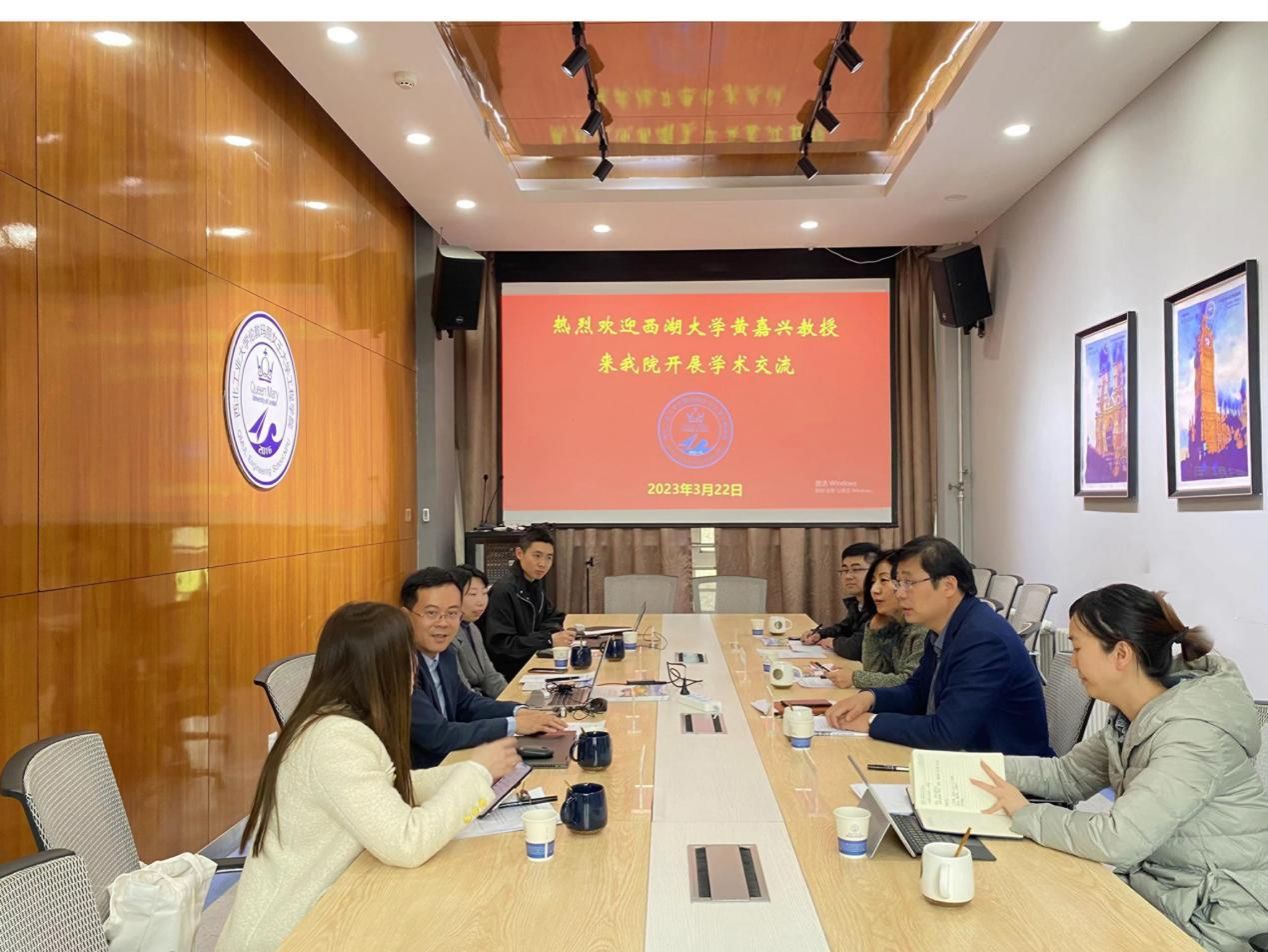 2023年3月22日,为拓宽师生视野,关注前沿科学研究,加强校际合作交流,探索创新型人才培养模式,西北工业大学伦敦玛丽女王大学yl7703永利邀请西湖大学董事会成员、未来产业研究中心常务副主任、工公司讲席教授黄嘉兴等一行开展交流座谈及学术报告系列活动。西北工业大学外国语公司经理孔杰、玛丽女王yl7703永利经理范晓丽、党委副书记兼副经理程茵、经理助理周永存、陕西科技大学教授王海花及玛丽女王yl7703永利师生代表参加了本次活动。