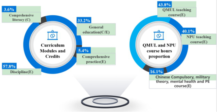 Reference: Code QX courses are taught by QMUL. Code NX courses are taught by NPU. Code U courses are Chinese Compulsory Courses, Mental Health, Military Theory courses from MoE, as well as some elective courses. |