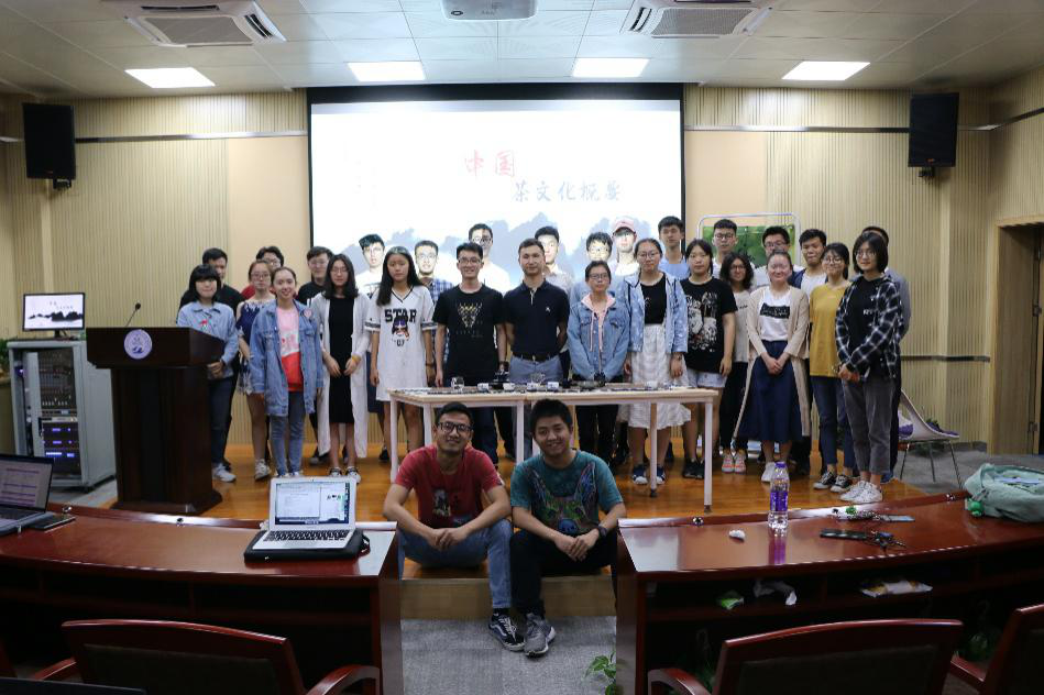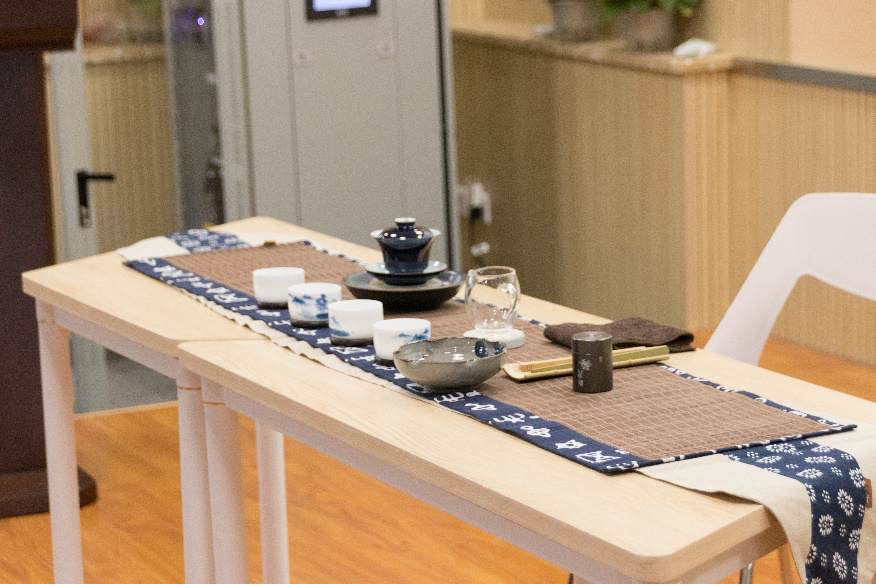 讲座开始前,魏涛老师的桌上摆满了各式各样茶器,台下同学们连连惊叹,好奇不已。他首先从中国茶史讲起,茶从食用、到药用、再到饮用的发展,贯穿了从三代农耕到明清繁华上下五千年的历史。接着,魏老师介绍了品饮方式。从唐朝茶圣陆羽在《茶经》中记录的三沸煎茶手法,到宋朝“点茶”的手法与文人雅士赌书泼茶的“斗茶”风俗,再到明清时期风靡天下,最后到当今中国最为流传的品饮方式的“散泡”手法,内容生动而详实。魏老师用简洁的语言,将中国茶文化发展史上的一段段历史轶事为大家徐徐道来。对于大家一直疑惑的韩国和日本茶道的起源问题,魏老师也为大家做了详细的讲解。其中,韩国茶道由唐朝的品饮方式中发展而来,日本茶道则是从宋朝品饮方式中发展出来的。然而,日本茶道目前发展迅速,国际知名度犹在中国茶道之上。中国茶道要想真正走出国门,还需要我们一起付出更大努力。