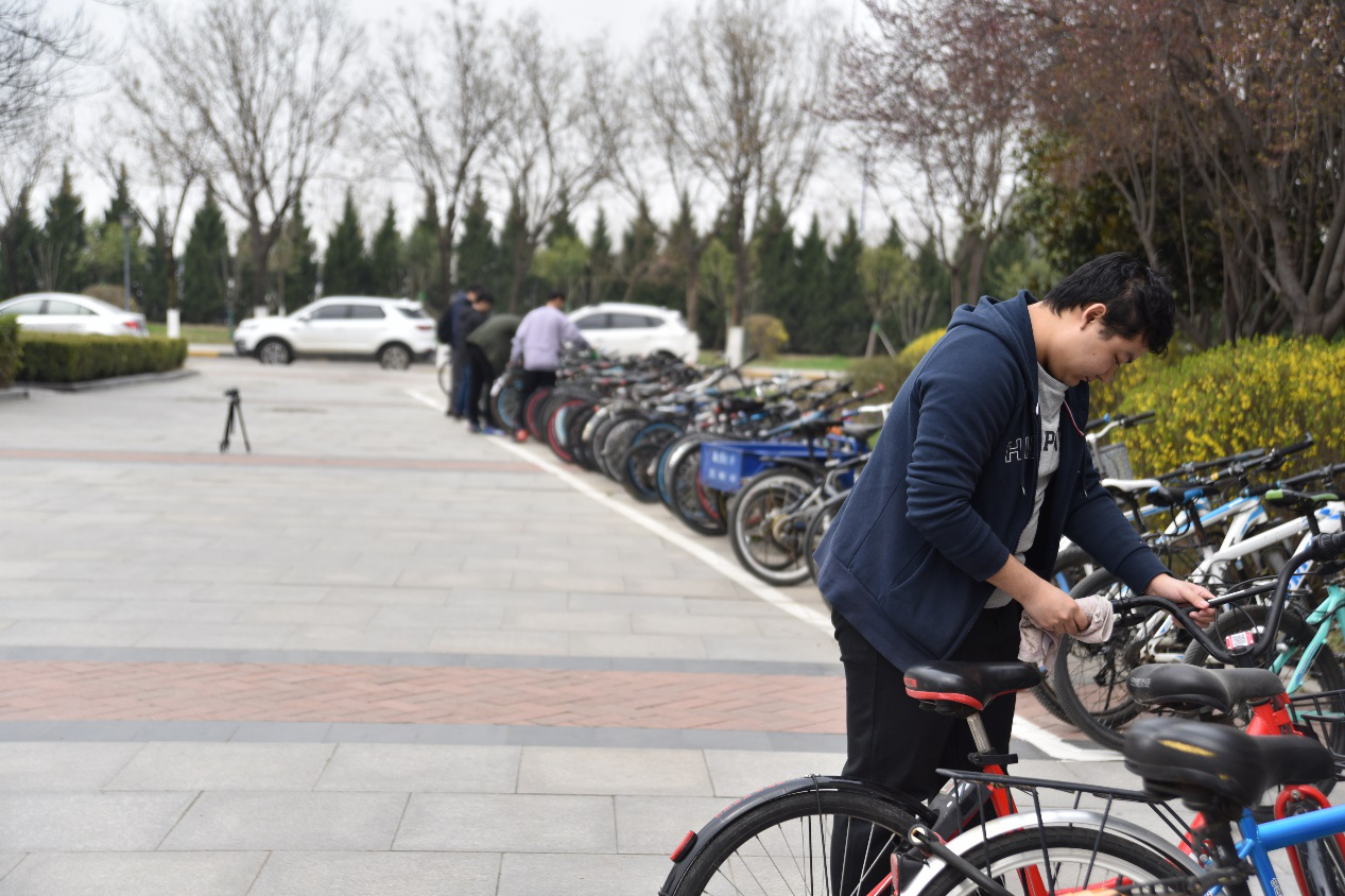 QM021702团支书将同学们分为两组,男同学负责擦洗摆放星天苑G座楼下的自行车,女同学负责星天苑B座楼下的自行车。同学热情参与,积极响应,纷纷贡献出了自己的抹布、水桶、洗洁精,从宿舍中走出来参与到这次的公益活动中。活动中,同学们积极踊跃,一丝不苟,涌现出了多个先锋榜样:一直为大家淘洗擦车布的林北辰,积极主动整理自行车的张潇洋,擦车先锋隋尚林,搬运工具器材的大班长刘扬……