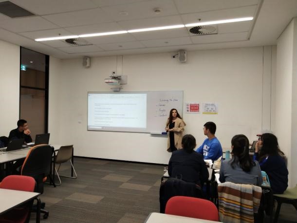 暑期公司语言方面的课程由Diala老师负责教授,让同学们融入澳大利亚的语言环境,同时对澳大利亚的文化风俗产生更全面的理解。英语课堂主要有练习和交流两个部分:练习除了较基本的语法,听力和写作之外,还包含了具有实践性质的任务,如运用英语建立自己的个人界面,对产品或者加工方式的科学描述等等;交流则注重突破课堂讲义涉及的范围,和老师讨论中国与澳大利亚生活和文化的差别,或者展开“是否需要转基因食品”的英文辩论,意在增强同学们对英语的活用程度。