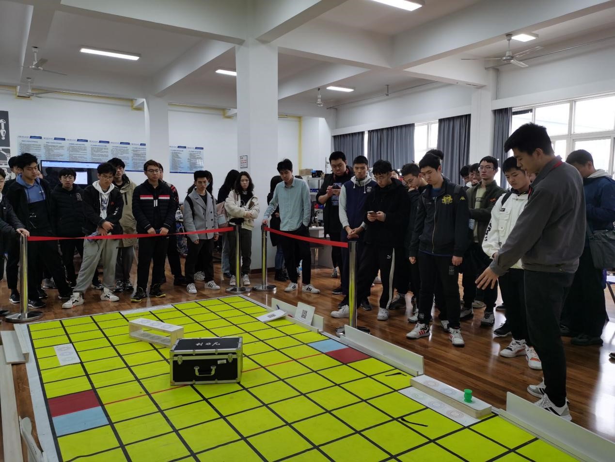 李发元带领同学们参观机器人实验室,并为同学们介绍了目前重大国际级、国家级赛事,如物流搬运机器人及水下清理机器人比赛等。新颖的竞赛项目和丰富的实验室实践体验激发了同学们进一步学习了解的兴趣。在接下来自主参观的过程中,大家饶有兴致地研究各式各样的机器人。