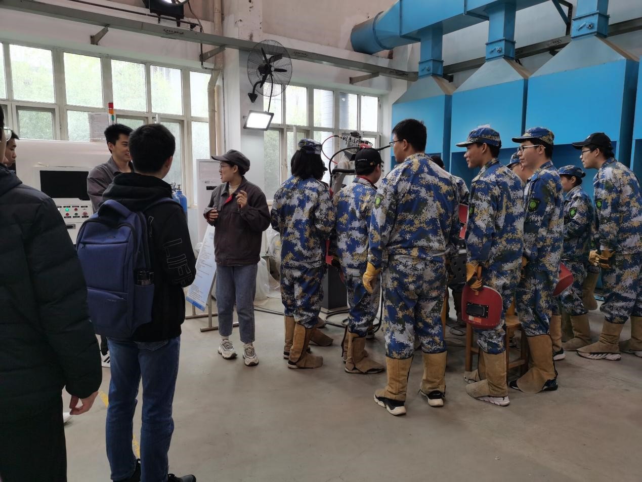 在加工车间里,老师们热情洋溢地向同学们介绍了先进的焊铸机器,用通俗易懂的语言深入浅出地介绍了机器的结构、特点及其科学原理。同时,大家近距离地学习观摩学长学姐在车间实习的场景,不断挖掘自身的潜力和无限可能性。