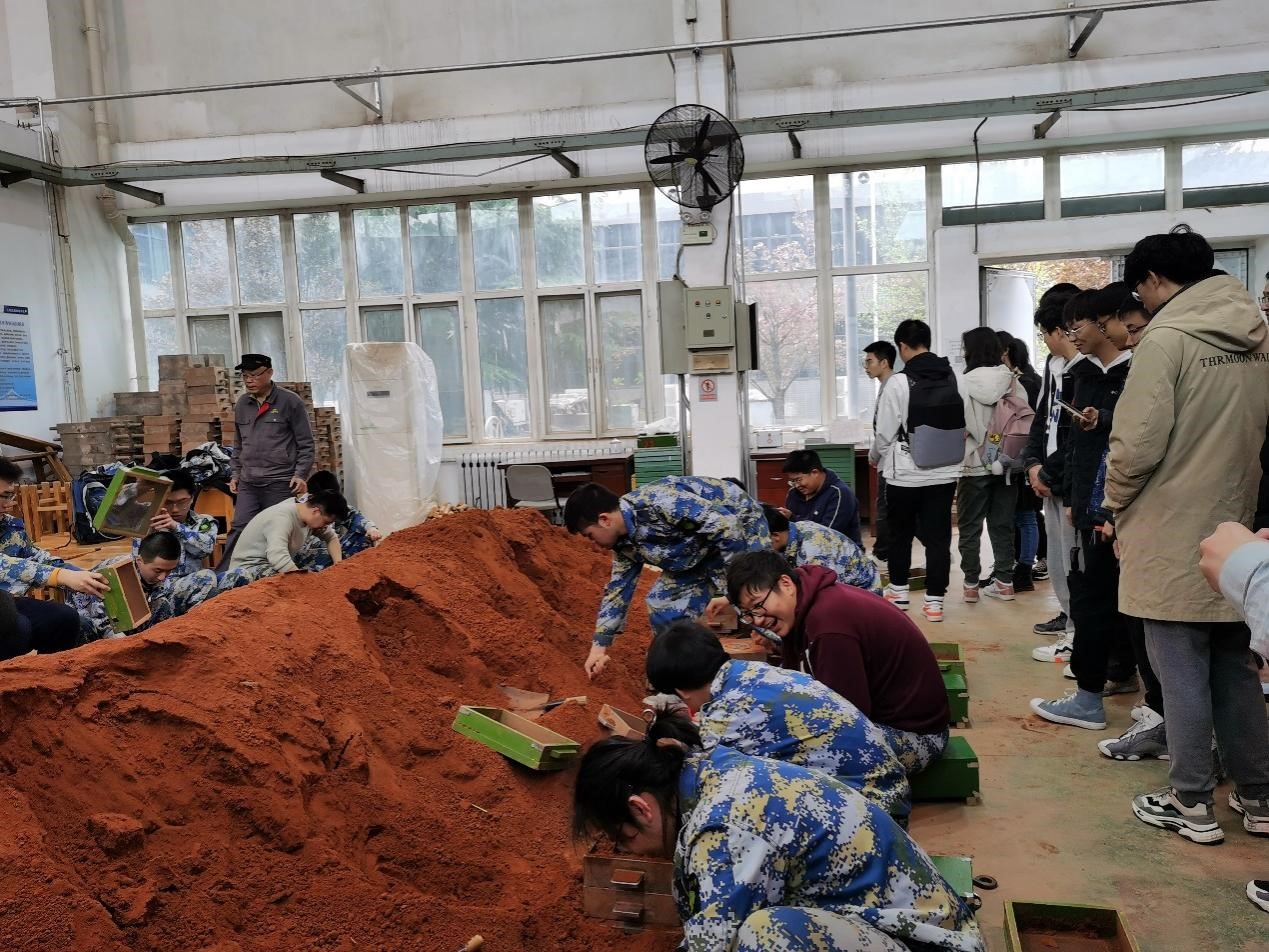 最后,同学们来到了铸造场所。任课老师向同学们详细介绍铸造物品的种类、铸造方法以及专用于铸造的砂土,大家收获新的知识与看法,感受到了科学本身的无限魅力。