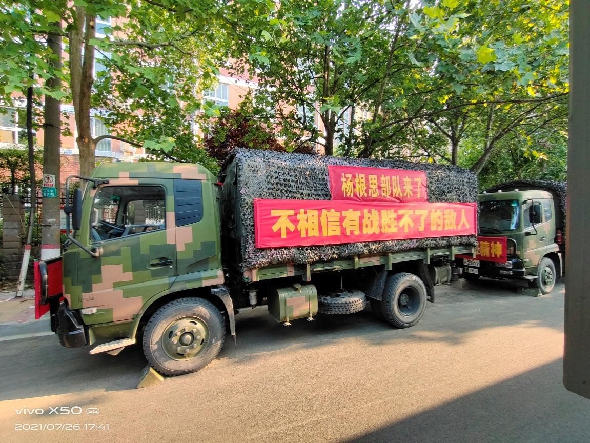 2019级同学郑非凡则在暴雨灾区郑州市二七区街道参与捐献、搬运物资的志愿活动。此次志愿活动由中国狮子联会陕西代表处组织,在陕西省内调配矿泉水、方便面、面包、药品等救灾物资,于7月24日将第一批救援物资运至郑州抗灾一线。在此次捐款捐物的活动中,郑非凡同学和家人尽可能多地捐赠了被褥和衣物,希望能给重灾区的人民带去一些温暖。