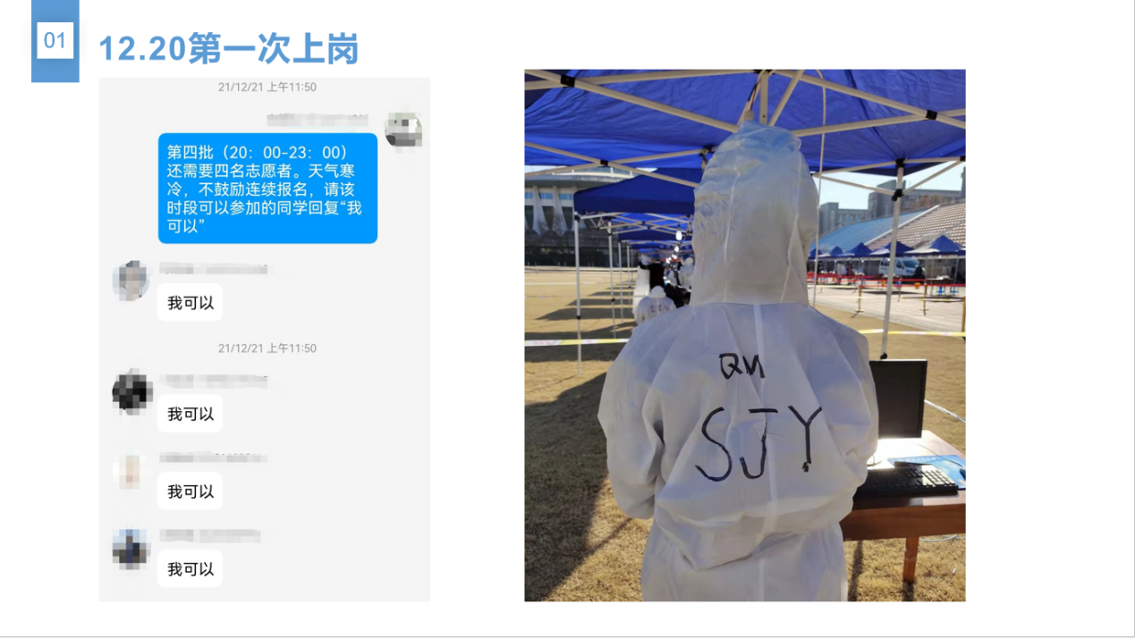 活动开始,首先由公司抗疫志愿者代表刘哲宁、宋静怡两位同学分享参与抗疫志愿服务的心得。刘哲宁讲述了自己参与“三餐配送、物资分配、垃圾清理”等活动的具体情况。他提到,志愿者们为热心服务广老员工,每天坚持早起,不辞辛苦地工作,矢志不渝地践行“同心战役,共克难关”的精神,自己深受感动,也倍感自豪,希望有更多的同学们加入到志愿者队伍,大家一起在疫情中守望相助,共克时艰!