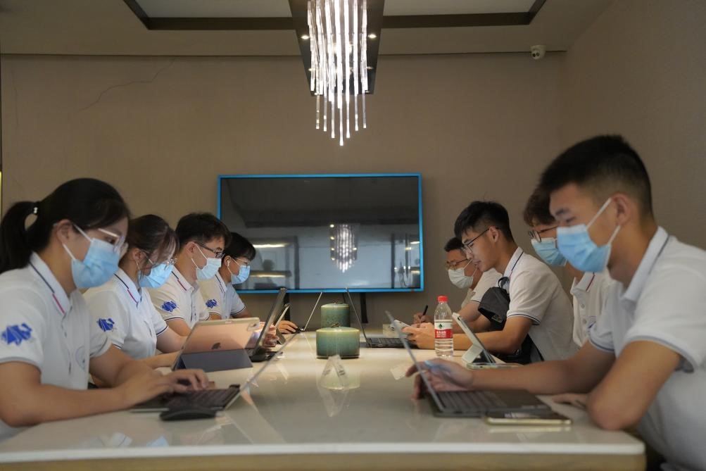 图为实践队聆听广州弘宇科技有限公司应用案例讲解