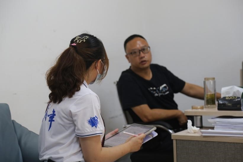 图为实践队队员与水磨镇镇长就推动文旅深度融合、做精产业振兴之品、打造乡村振兴“新引擎”等内容进行交流座谈。