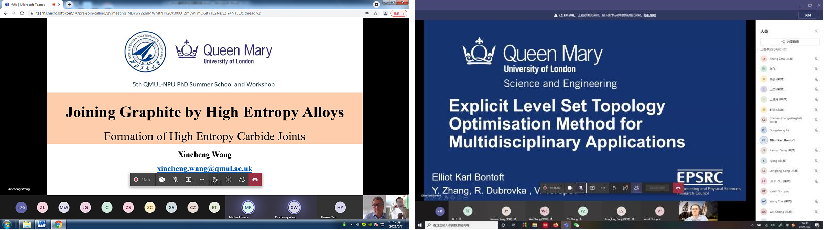 自2017年以来,西北工业大学-伦敦玛丽女王大学博士生暑期(寒假)公司已连续举办4届,本次会议是第五届,受到新冠肺炎疫情影响,研讨会采用线上会议形式举行。本次研讨会涵盖专业领域广泛,包括6个平行论坛:高熵陶瓷材料、结构工程优化、能量转换和存储材料、新型纳米生物材料、聚合物智能材料和生物工程,来自公司和伦敦玛丽女王大学的30余位教授、40余位博士生参加会议并作学术报告73场,吸引了来自西北工业大学、伦敦玛丽女王大学的200余名教师、员工线上参会。