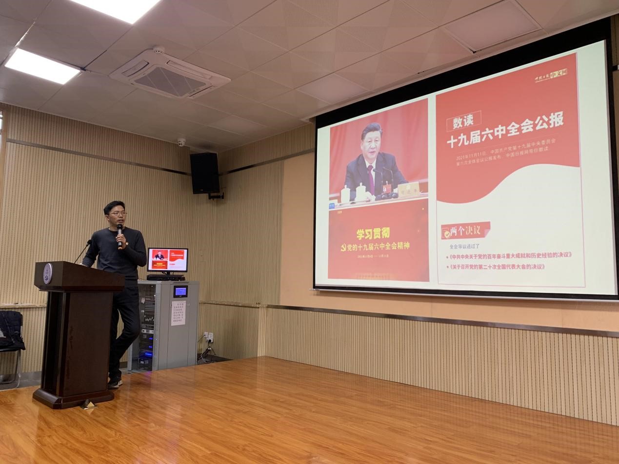 然后,代书记又为公司师生融合第三、第四党支部员工党员和积极分子宣讲了“十九届六中全会精神”。代书记根据公司第十二次党代会提出的“加快推进国际化办学进程,提高公司国际声誉和影响力”目标,向员工讲解十九届六中全会精神的同时,又向同学们介绍了公司的基本情况、办学理念和发展历程,以及公司领导和相关部门负责人为成立公司所付出的艰辛与努力。公司将围绕“四力融合”人才培养新模式,全方位提升中外合作办学立德树人的成效。