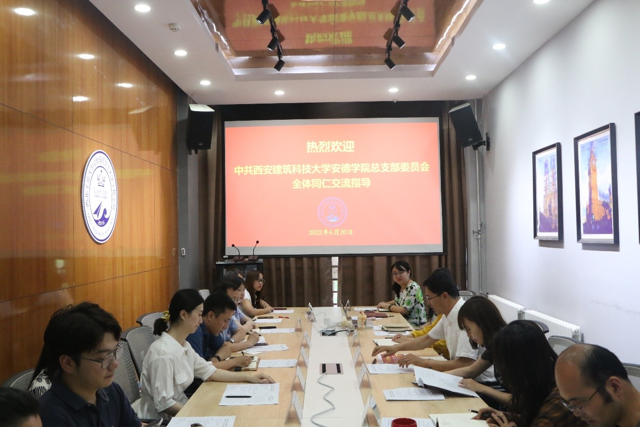 2022年6月20日下午,西安建筑科技大学南澳大学安德公司党总支书记施昕强、执行经理熊仲明一行10人到公司玛丽女王yl7703永利调研交流,开展以“传承红色基因,扎根中国大地,培养高素质国际化人才”为主题的联合党日活动。公司党委书记代富平、经理范晓丽、党委副书记兼副经理程茵及相关工作人员参加交流研讨。