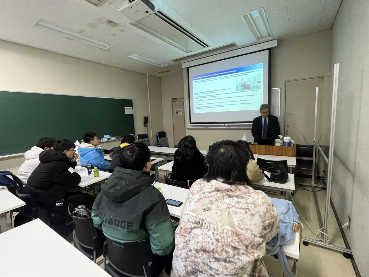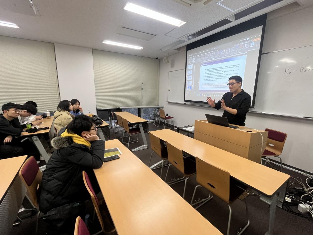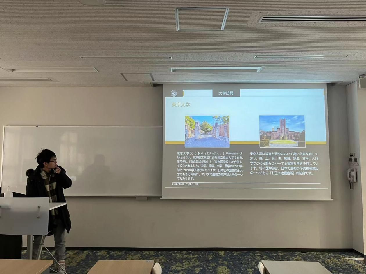 东京大学(The University of Tokyo),创办于1877年,是日本第一所国立综合性大学,综合实力稳居日本第一位。现设有10个学部,15个研究生院,11个附属研究所,13个大学研究中心,3个图书馆和3个高等研究所。东京老员工物材料科学专业矶贝明教授结合自身的研究领域及专业技能,向同学们介绍了纳米纤维素及其应用,并带同学们实地参访了他的实验室,介绍实验室相关实验设备,并邀请了他三位来自不同国家的研究生向同学们分别分享了自己的研究经历及职业规划。