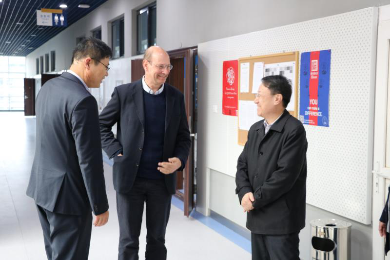 He first visited office area, students' activity room and the Internet Smart Classroom in Chang'an Campus and then joined a meeting with all of the staff from JEI. Dean Kong Jie made detailed reports on the school's framework construction, Party construction, teaching organization, student affairs, development plan and recent work. Executive Vice Dean Andy Bushby, Vice Deans Fan Xiaoli and Chen Jun added some details according to Kong Jie's report.
