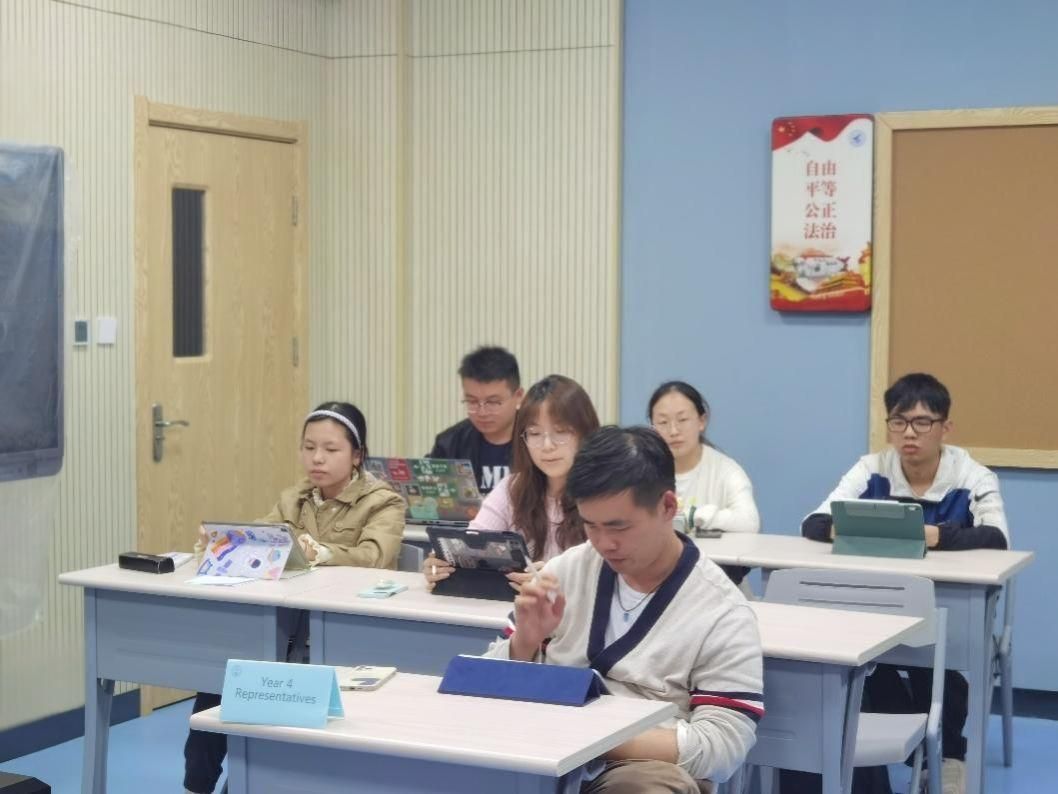 At the end of spring, the wind is gentle and the grass is green. As the British teachers returned to school, on April 23rd, the 13th meeting of Student-Staff Liaison Committee (SSLC) of QMES was successfully held offline. Fan Xiaoli, Dean of QMES; Cheng Yin, Vice Dean and Director of SSLC; Li Wang, Director of the Student Affairs and Co-Director of SSLC; Faith Nightingale, Director of the Teaching Affairs; Qi Yue, Huang Quanzhang, Deng Xinru, Alan Allman, and student representatives and course representatives from all grades participated in this meeting which was presided over by Cheng Yin.