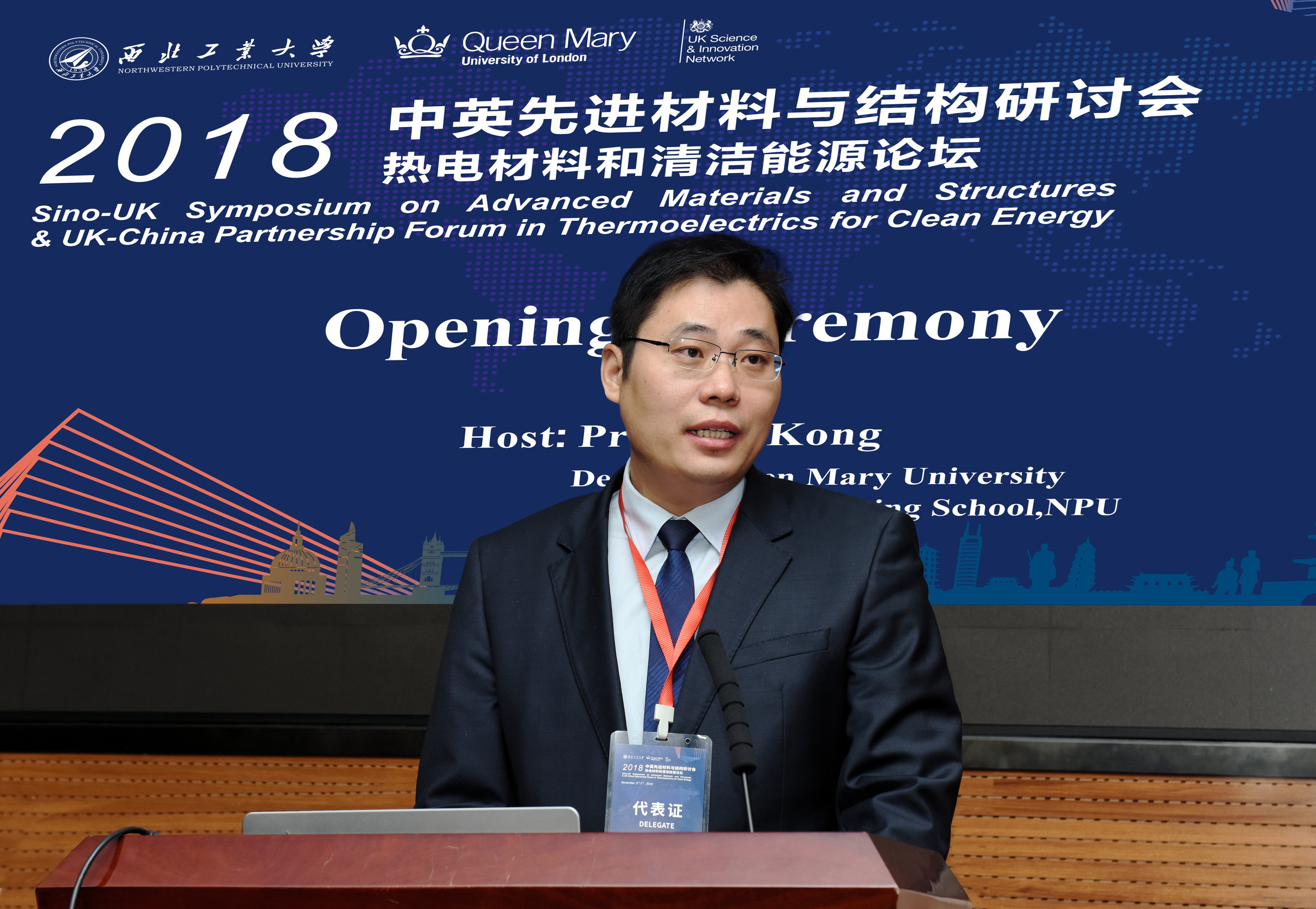 The 2018 Sino-UK Symposium on Advanced Materials and Structures & UK-China Partnership Forum in Thermoelectrics for Clean Energy which was jointly hosted by British Embassy, Beijing, Northwestern Polytechnical University (NPU), Queen Mary University of London (QMUL) andXi’an National Civil Aerospace Industrial Base successfully took place in International Conference Center of NPU on November 5, 2018. More than 50 internationally renowned experts and scholars have delivered academic reports and held in-depth discussions on the topics of thermoelectric materials and clean energy.