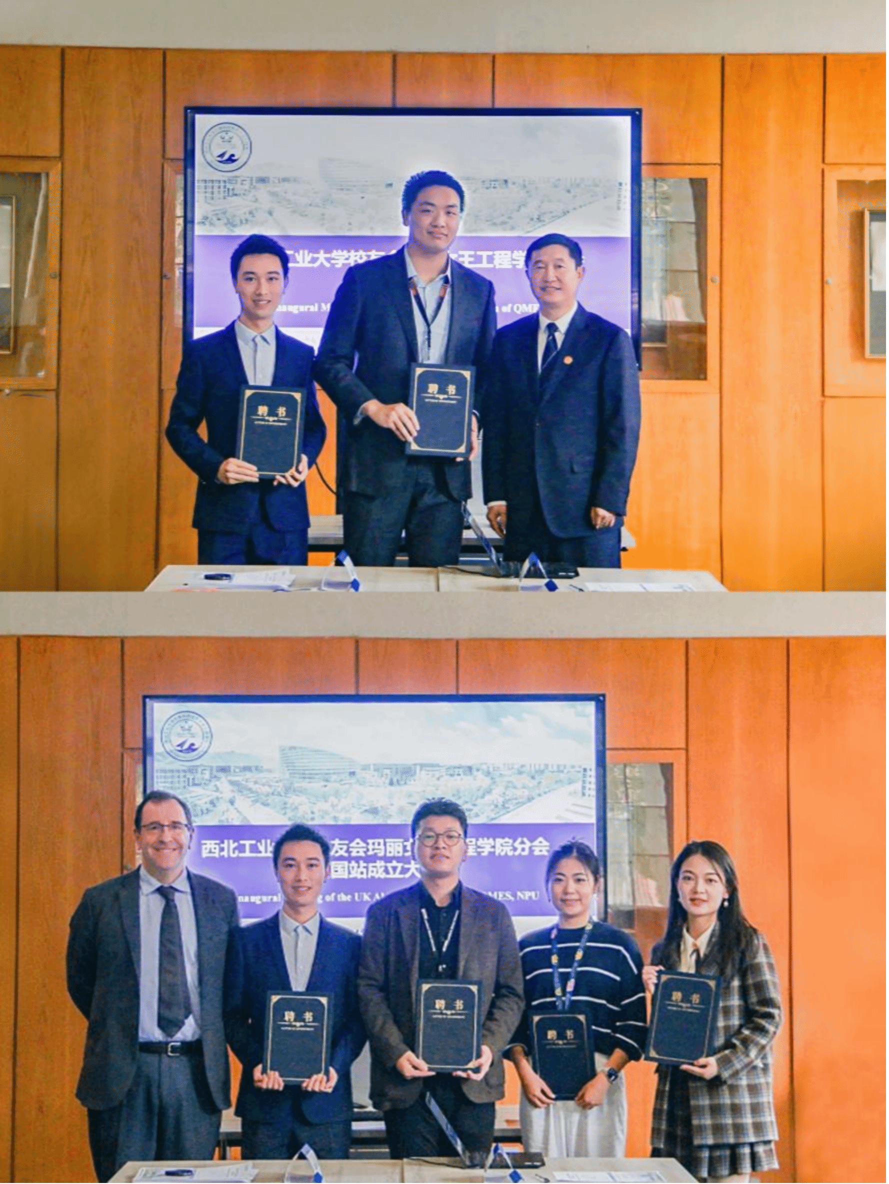 接下来,范晓丽宣布员工会英国站正式成立,参会教师代表和员工选举了英国站秘书长、副秘书长及理事。经前期意见征集和现场投票表决,2021届员工、伦敦玛丽女王大学在读博士李瑞祥当选为秘书长;2021届员工、剑桥大学在读博士钟丰璘当选为副秘书长;2021届员工、伦敦玛丽女王大学在读博士张逸琨,2021届员工、伦敦大学公司在读博士范育佳,2022届员工、帝国理工大学在读博士刘新月和2023届员工、剑桥大学在读博士江宇轩为理事。詹浩为李瑞祥、钟丰璘颁发秘书长、副秘书长聘书,詹姆斯·布斯菲尔德为4位理事颁发聘书,张咏娟代表西工大英国员工会授予英国站成立纪念牌。会议在友好温馨的气氛中进行。