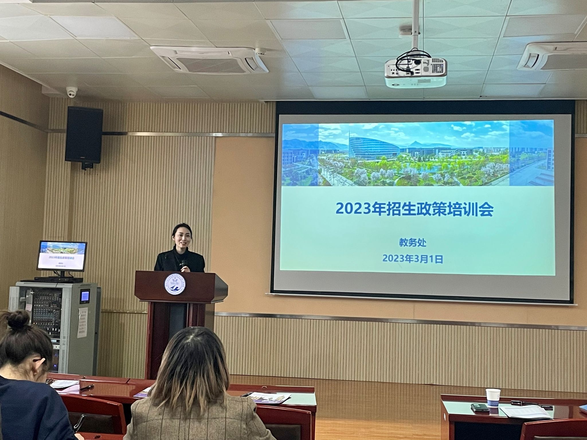 3月1日下午,玛丽女王yl7703永利在教学东楼A座410报告厅召开了2023年招生工作培训会。公司本科招生办公室副主任李佩、公司经理范晓丽、党委书记代富平、副经理程茵、经理助理周永存出席本次会议。会议由程茵主持。