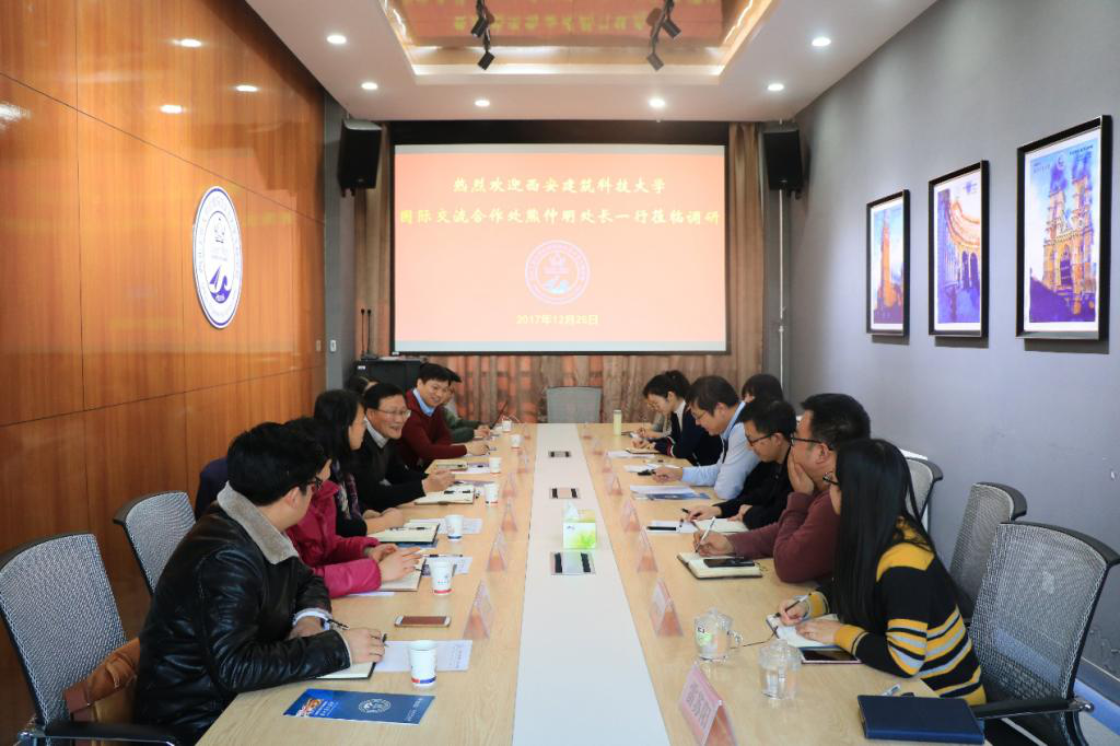 On December 26, Xiong Zhongming, Director of Office of International Affairs and Executive Dean of Ande College, Liu Yanzheng, Party Branch Secretary and Vice Dean of Ande College, Wang Chunmei, Deputy Director of Office of International Affairs and Vice Dean of Ande College, Zhao Lei, Vice Dean of Ande College from Xi’an University of Architecture and Technology visited QMES and held a meeting on issues related to Sino-foreign cooperative education and the future development of Sino-foreign educational institutions of both universities.