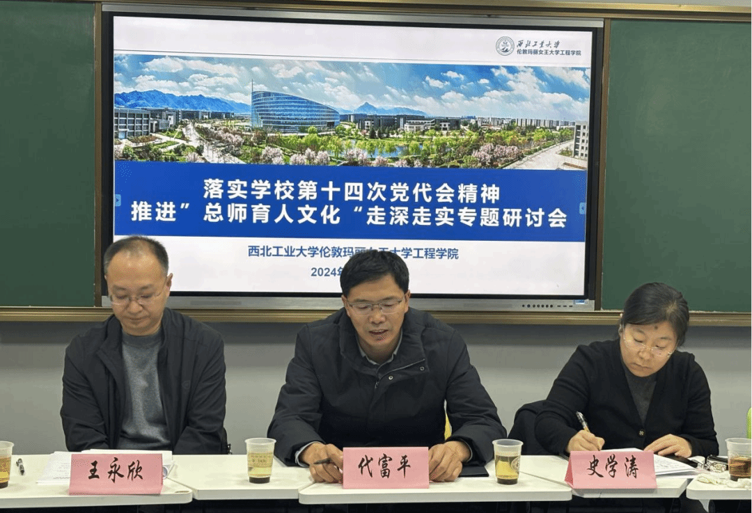 To thoroughly implement the spirit of the 14th Party Congress of NPU, promote the in-depth and practical advancement of the “Chief Engineer Education Culture”, and comprehensively integrate this culture into talent development initiatives, thereby enhancing the quality of education at QMES, a focused seminar was held on the morning of November 21st at the West Building of Graduate Studies. The seminar focused on advancing the “Chief Engineer Education Culture” initiative. Dai Fuping, Party Secretary of QMES, Wang Yongxin, Vice Dean for Teaching, department heads, teachers, class advisors, counsellors, and all staff from the QMES’s Education and Teaching Centre attended the meeting, which was chaired by Wang Yongxin.