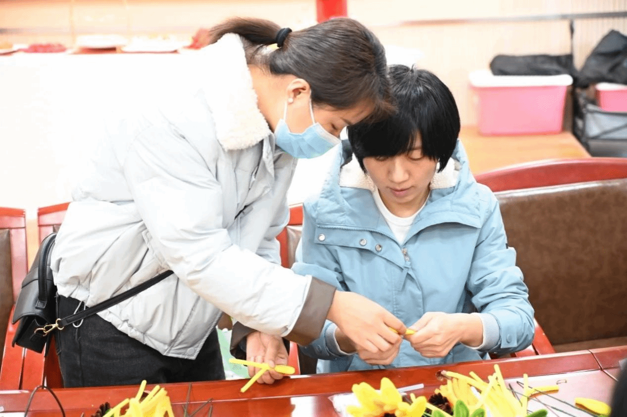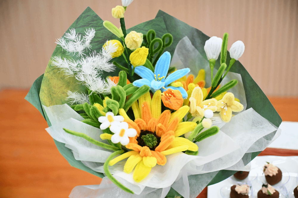 Under the patient and detailed guidance of their instructors, the participants embarked on a journey of creative beauty. Enthusiastically engaging in the craft-making process, the teachers began with the basic technique of petal weaving. With skilled hands and boundless creativity, vibrant, lifelike flowers bloomed in their hands. Through careful arrangement and intricate wrapping, these flowers were transformed into stunning bouquets, each burst of colour seeming to carry the unique charm and elegance of the female faculty members, creating a beautiful visual display at the event.