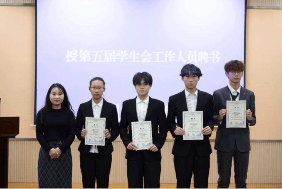 Xu Yang, a member of the Student Union Presidium, announced the Notice on the Appointment of Yang Fenping as Secretary-General of the QMES Student Union and formally presented the appointment certificate.