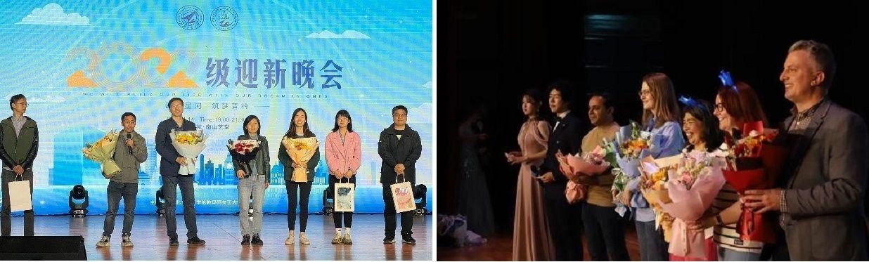 On April 14, 2023, a party was held by QMES to welcome the students of the class of 2022 and teachers of QMUL at Nanshan Art Hall of Haitian yuan. Fan Xiaoli, Dean of QMES, Dai Fuping, Secretary of the Party Committee of QMES, Cheng Yin, Vice Dean of QMES, Huang Quanzhang, Secretary of the Youth League Committee of QMES, Yang Ye, Director of the Teaching Affairs Office, Yang Yufei, QMES Party Committee Commissary in Charge of Organization, and Yuan Menglei, Counselor of the Students of the Class of 2022, and teacher representatives of QMUL, including Alan Allman, Faith Nightingale, Luqman Ahmed, Agne Kocnevaite, etc attended the party.