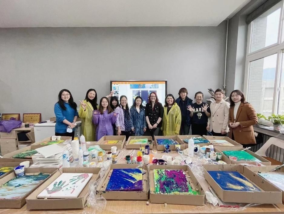 In order to improve the artistic literacy of faculty and staff and enrich teachers’ after-school life, QMES also specially organized fluid painting experience activities. Faith Nightingale and Maria Romero marveled at the innovative format of the activity. The faculty and staff of QMES felt the charm of art during the activity.